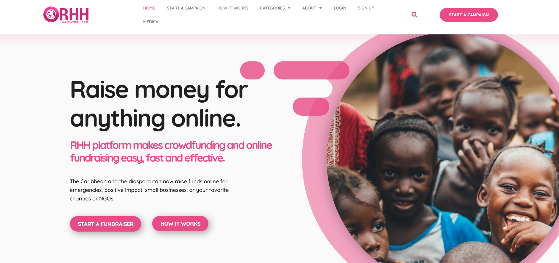RHH is a Caribbean-focused fintech platform with the primary purpose of providing a structured framework to facilitate the online fundraising efforts of individuals, entrepreneurs, start-ups, charities and non-profit organizations, as well as to provide a transparent avenue for philanthropy.
